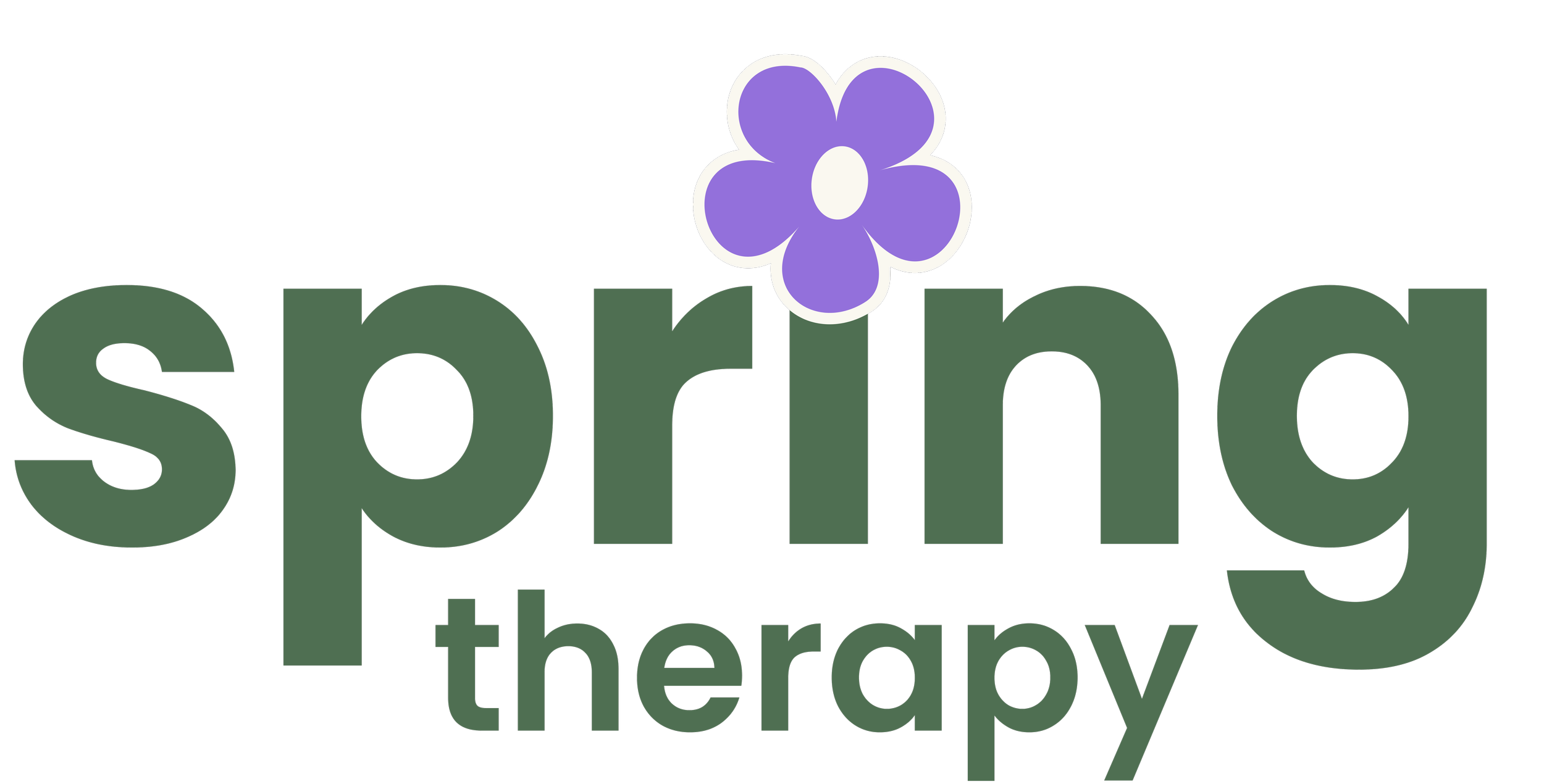 Spring therapy logo with green text and a purple flower above the word "spring"